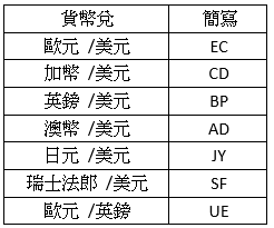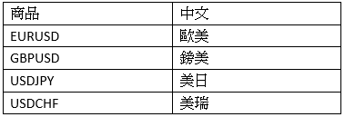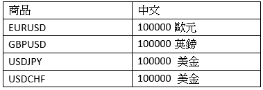 僅列舉四大常見貨幣兌,其餘商品看各自券商